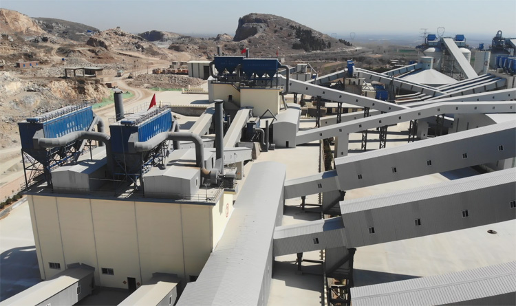 生產線采用封閉式生產模式,引入全封閉儲料倉、中轉料倉,安裝全套除塵設備等,以降低現(xiàn)場的揚塵污染,滿足環(huán)保要求。每個揚塵點都配置除塵設備,實現(xiàn)綠色生產。