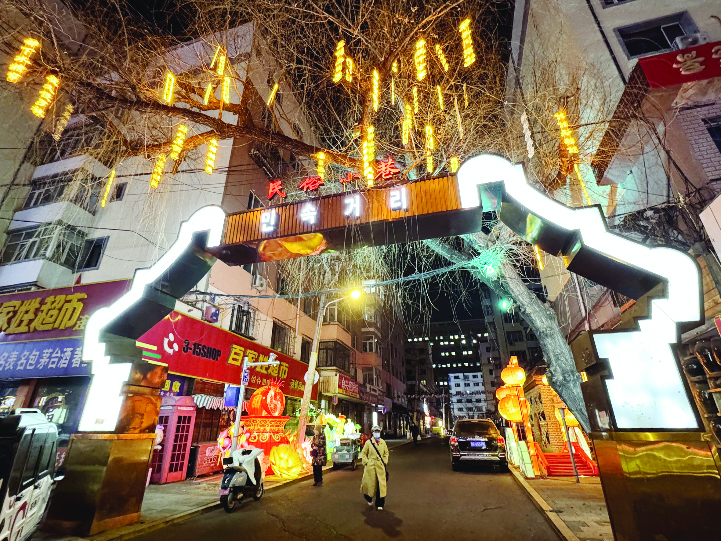 當下的牡丹江,冬日夜色是一幅由冰雪、燈火與民俗交織的美麗畫卷,銀裝素裹的城區與璀璨光影相映成趣,營造出童話般的氛圍。