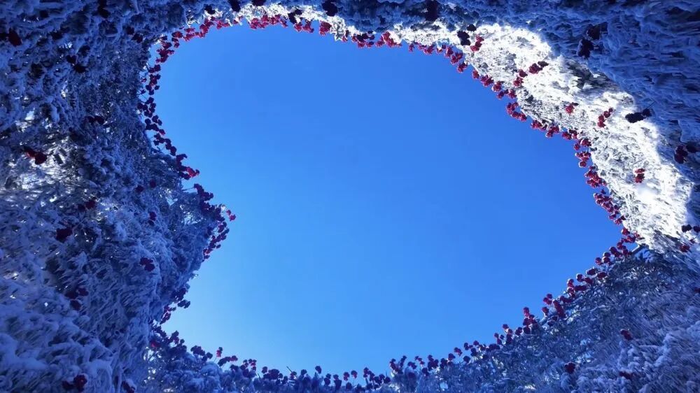 五彩熱氣球緩緩騰空,掠過銀裝素裹的皚皚雪原,百年建筑與連綿林海在身下鋪展,冬日限定的冰封玫瑰點綴其間,為橫道河子鎮的冰雪畫卷添上靈動一筆。