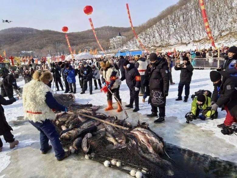 據了解,鏡泊湖漁獵文化可追溯至唐朝時期,彼時漁民在凜冬鑿冰捕魚,“冰湖騰魚”的盛況被載入史冊。這種與嚴酷自然搏斗的生存智慧代代相傳,成為跨越古今的文化盛宴。如今,鏡泊湖冬捕節已成為國家級示范性漁業文化節慶,曾創下單網捕撈86萬斤的紀錄。本屆冬捕節“頭網”捕獲量達2.8萬斤。