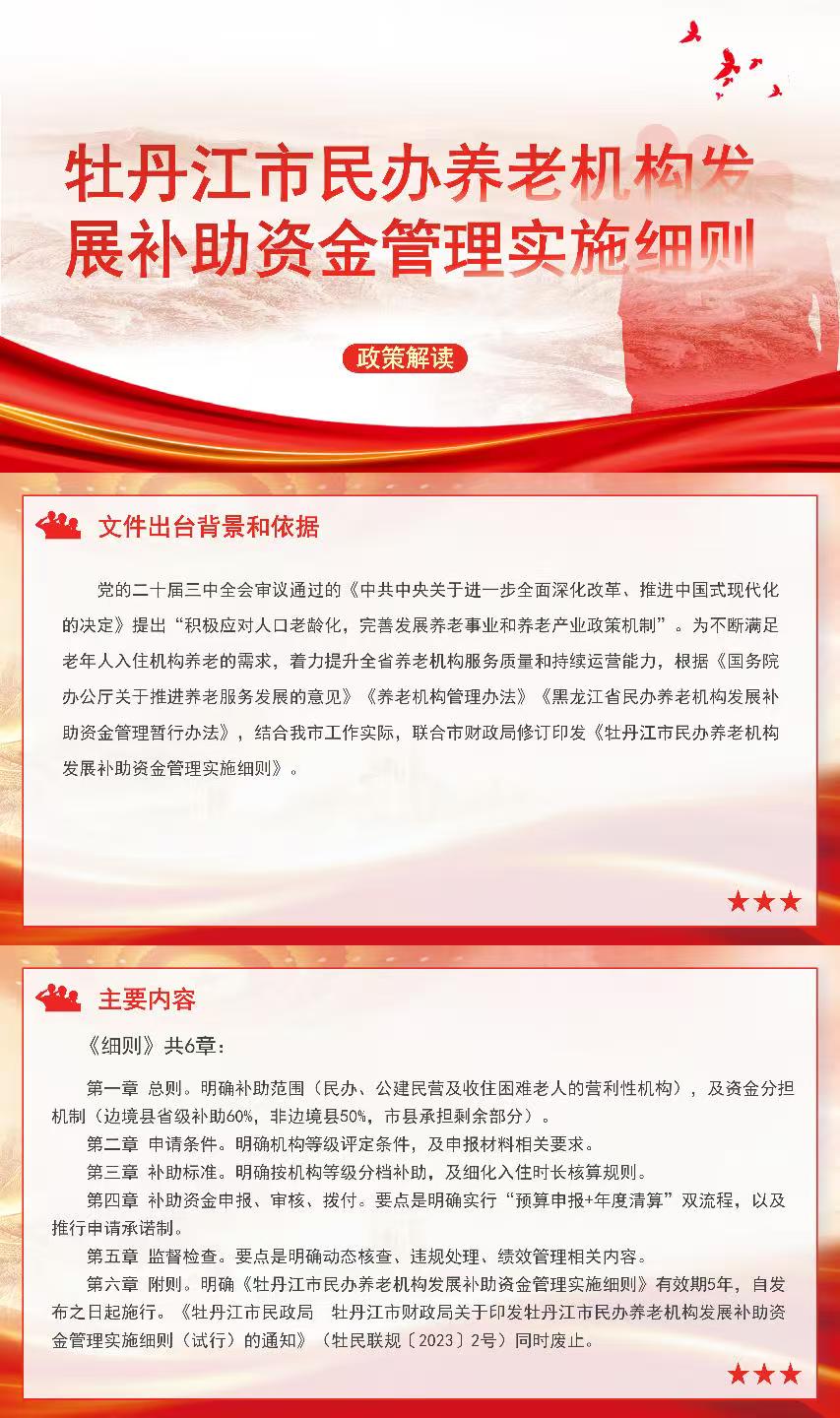 原文鏈接:關(guān)于印發(fā)《牡丹江市民辦養(yǎng)老機(jī)構(gòu)發(fā)展補(bǔ)助資金管理實(shí)施細(xì)則》的通知