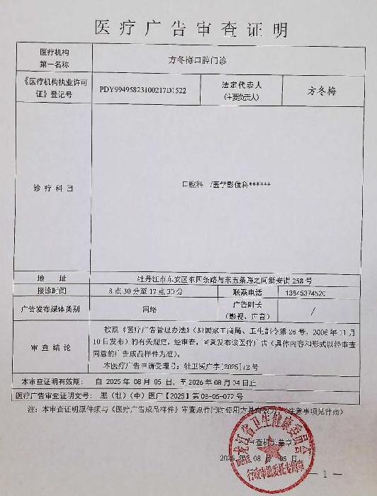 方冬梅口腔門診-醫療廣告審查材料(網絡)