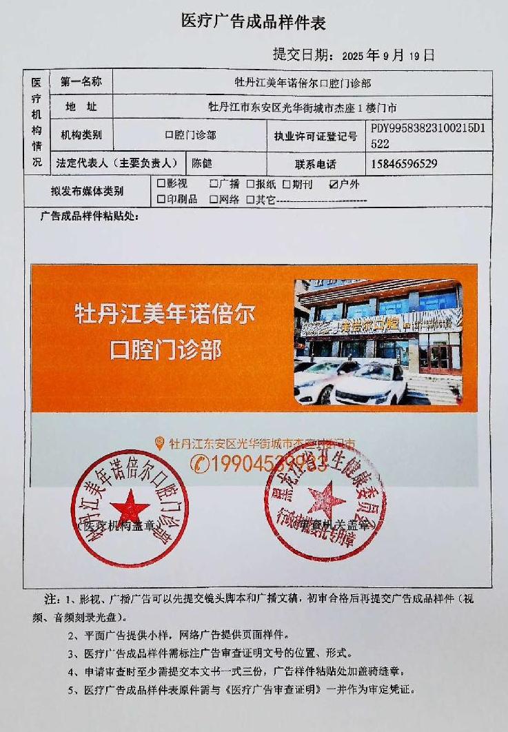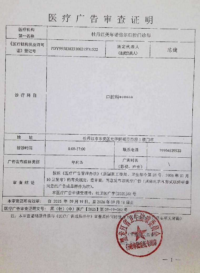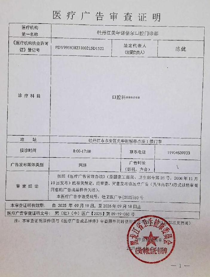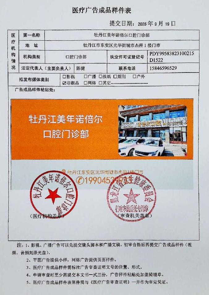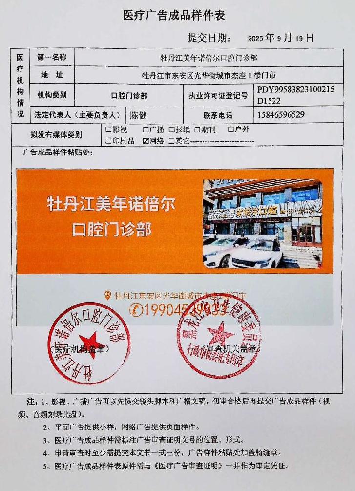牡丹江美年諾倍爾口腔門診部-醫療廣告審查材料-網絡、戶外、印刷品