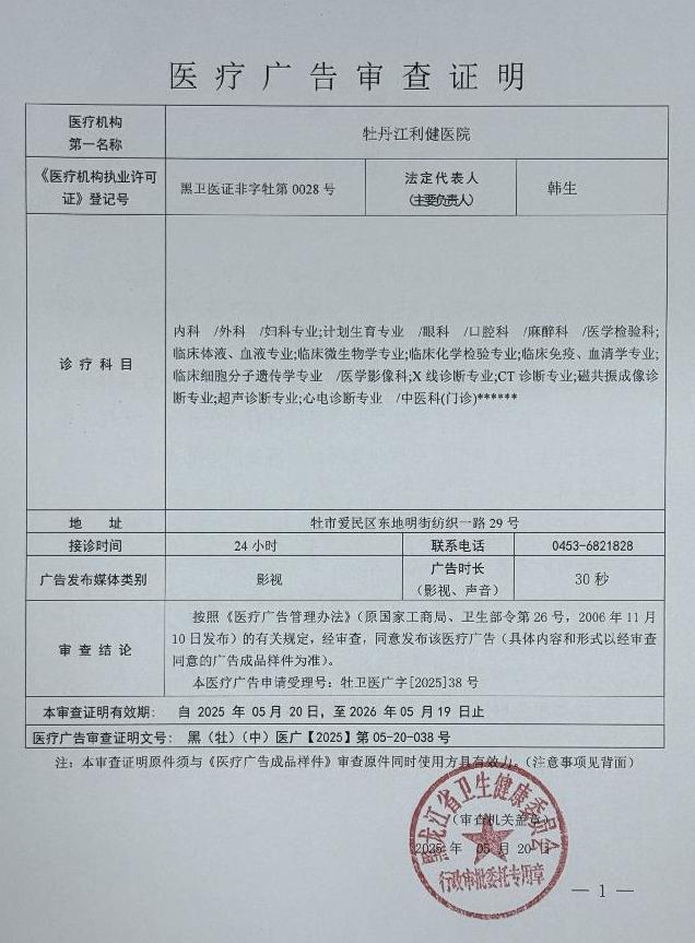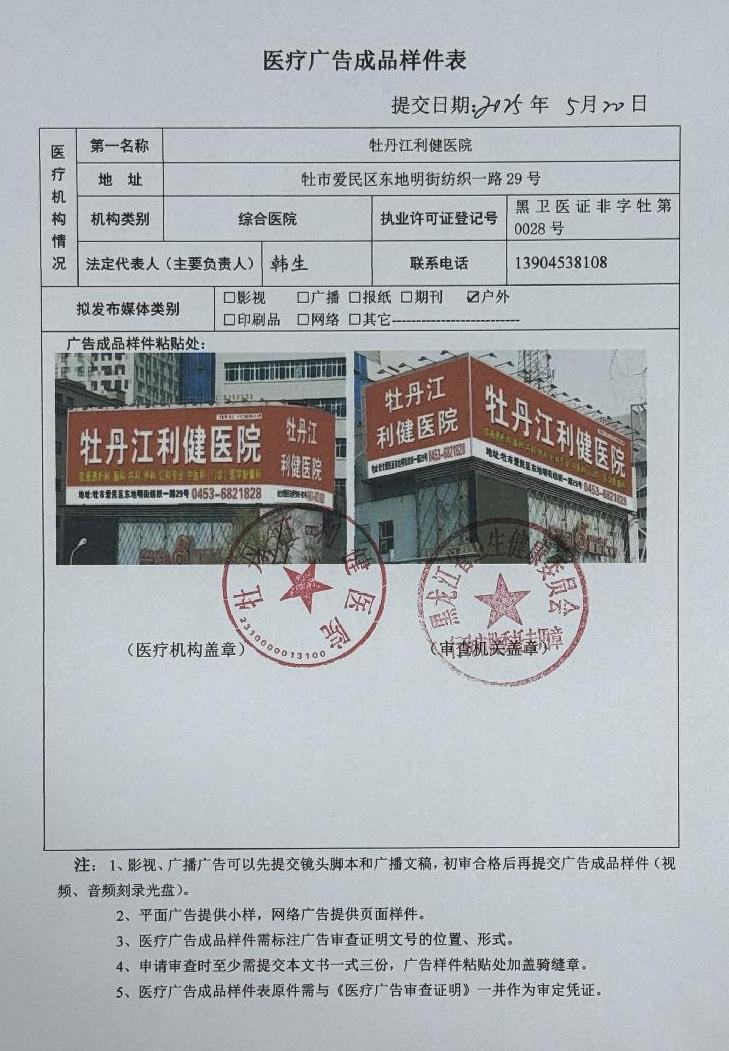 • 牡丹江利健醫院-醫療廣告審查材料(戶外、影視)