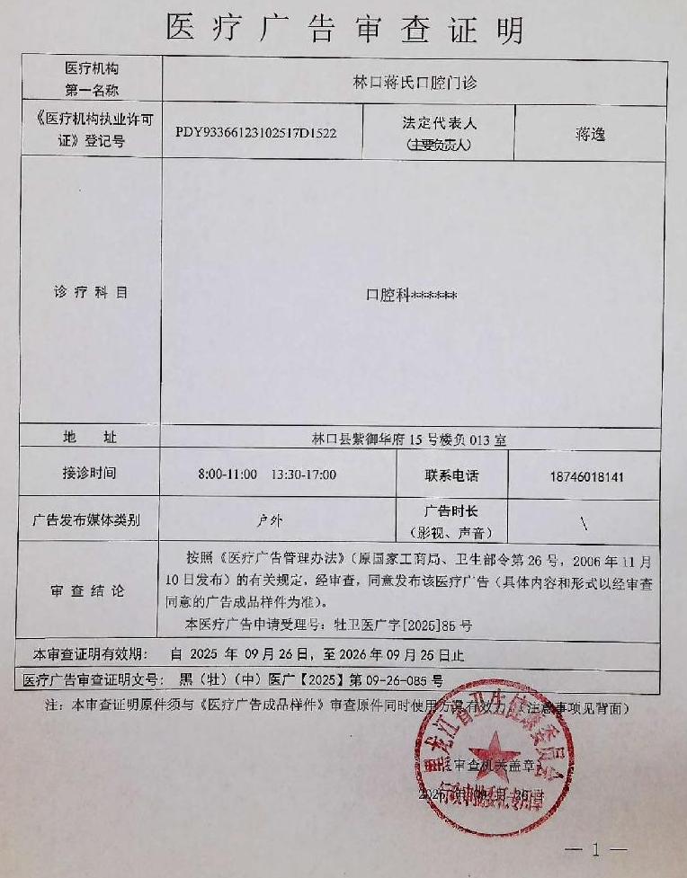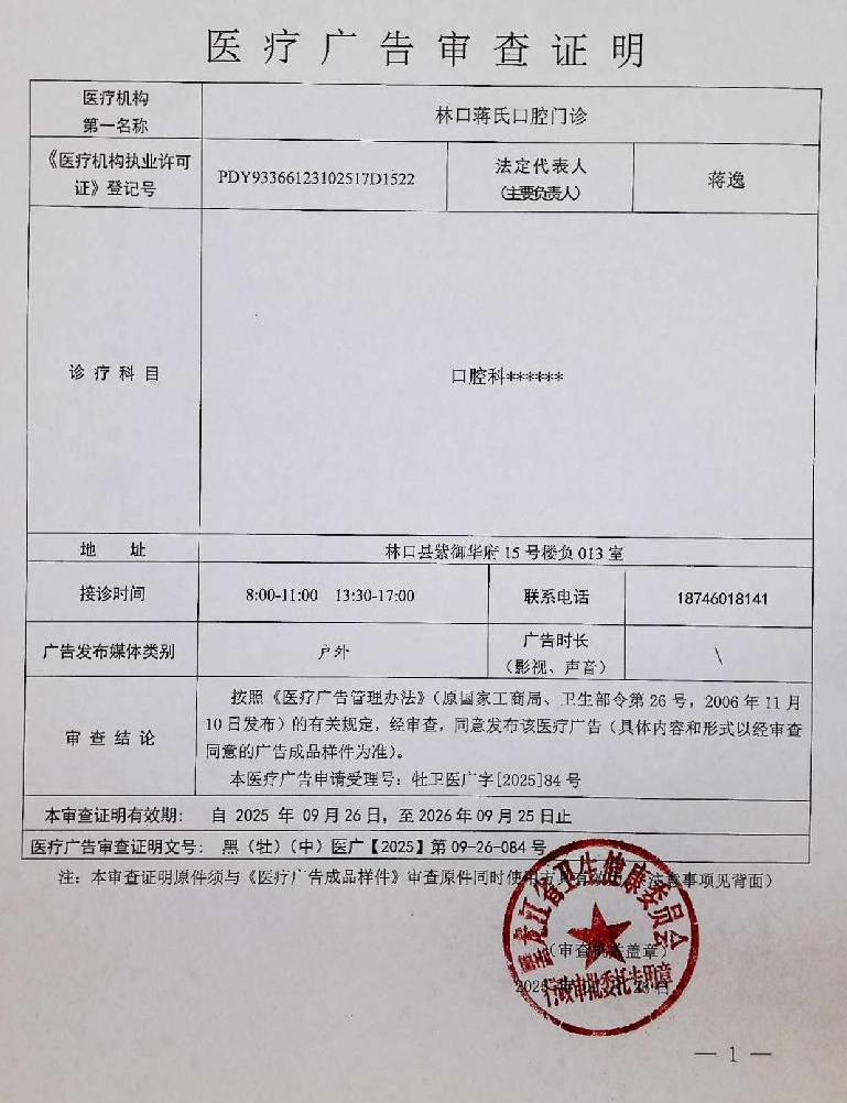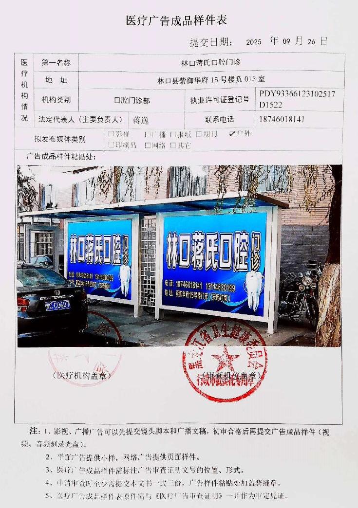 • 林口蔣氏口腔診所-醫(yī)療廣告審查材料-戶外