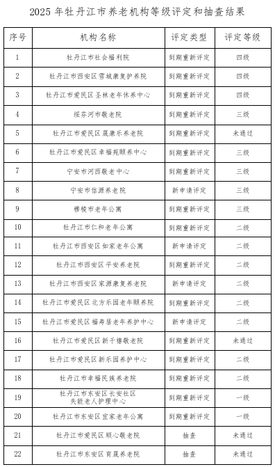 關于2025年牡丹江市養老機構等級評定和抽查結果的公示
