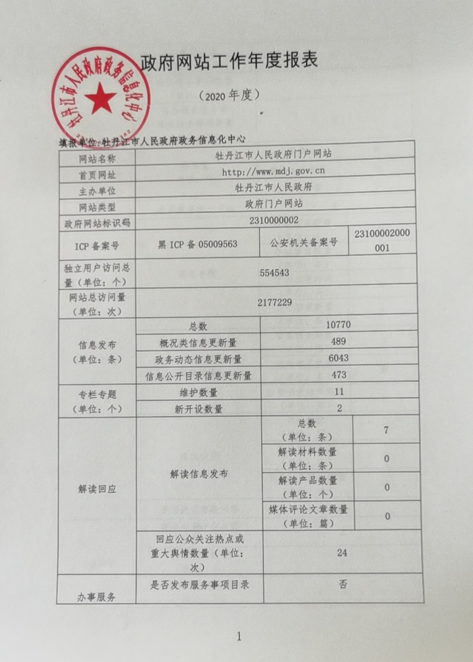 牡丹江市人民政府2020年網(wǎng)站工作年度報表