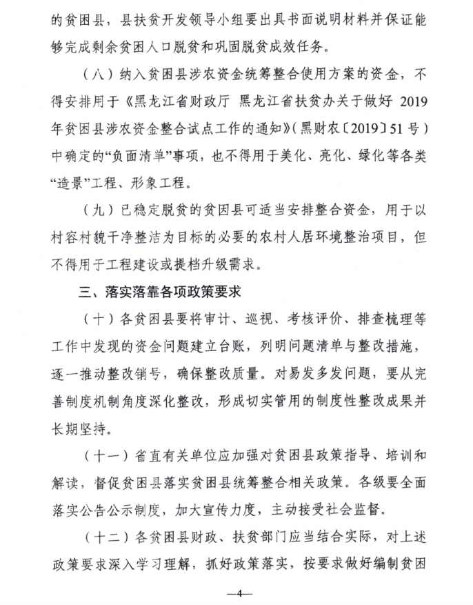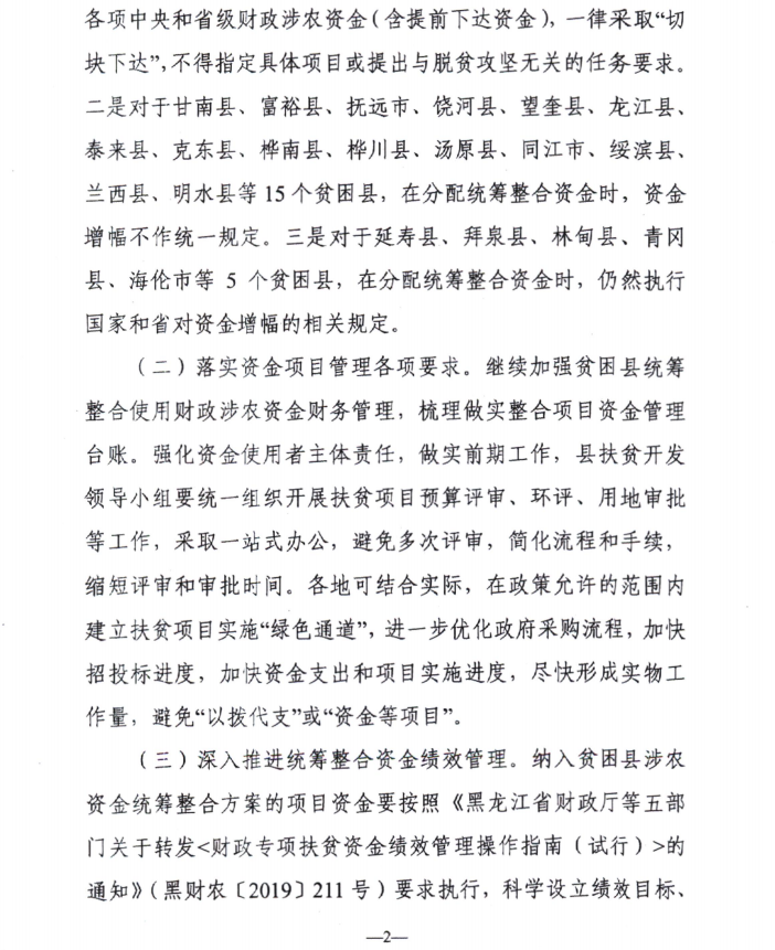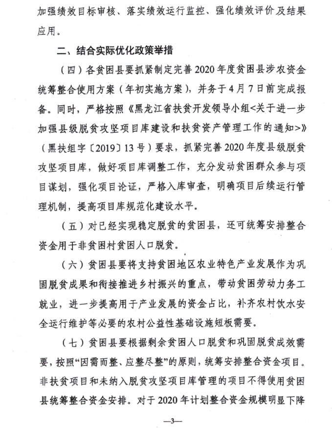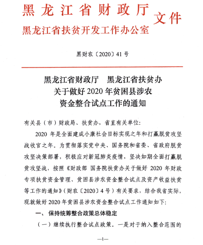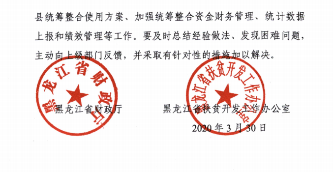 黑龍江省財政廳 黑龍江省扶貧辦關于做好2020年貧困縣涉農資金整合試點工作的通知 黑財農〔2020〕41號
