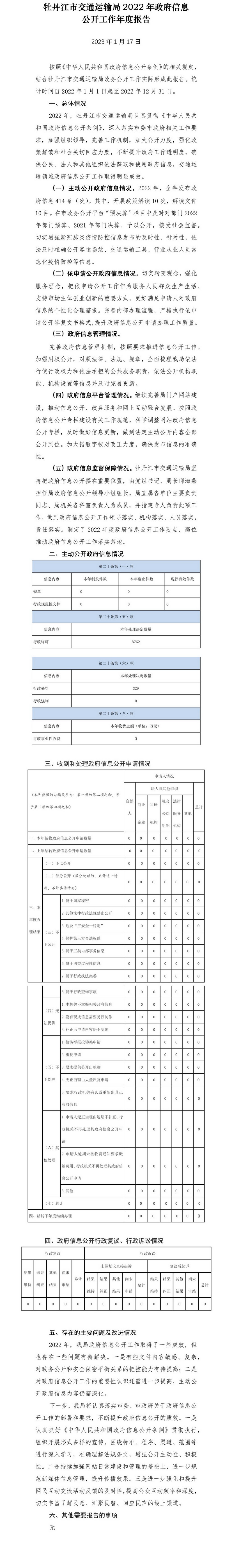 • 牡丹江市交通運輸局2022年政府信息公開工作年度報告