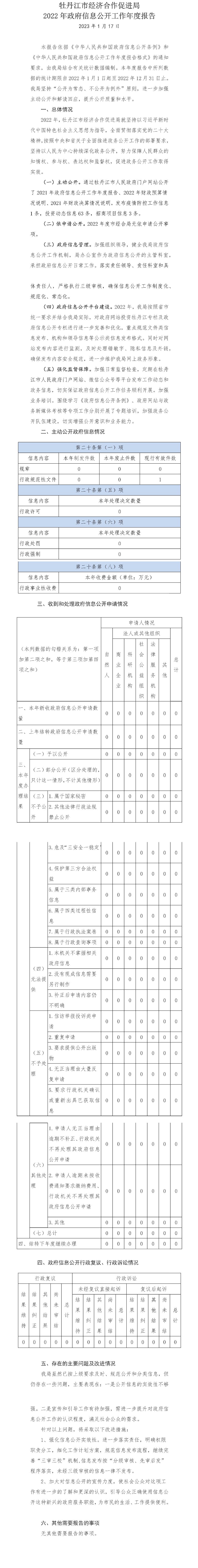 牡丹江市經濟合作促進局2022年政府信息公開工作年度報告