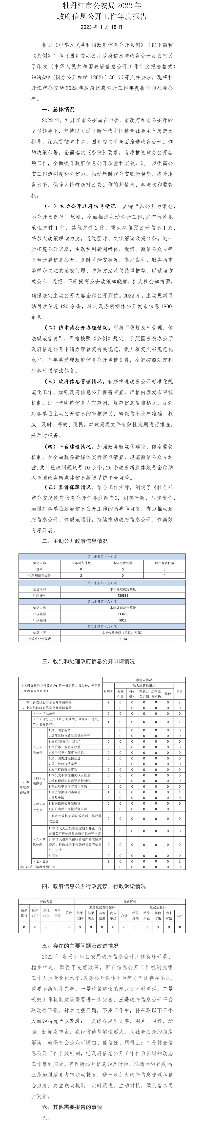 牡丹江市公安局2022年政府信息公開工作年度報告