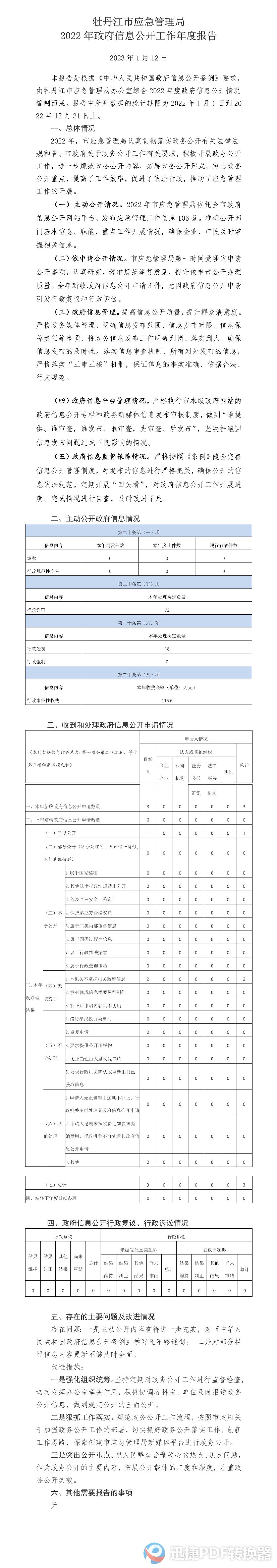 牡丹江市應(yīng)急管理局2022年政府信息公開工作年度報(bào)告