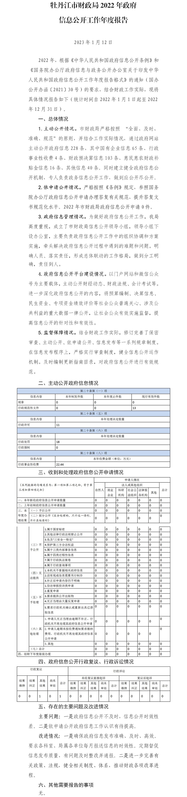 牡丹江市財政局2022年政府信息公開工作年度報告