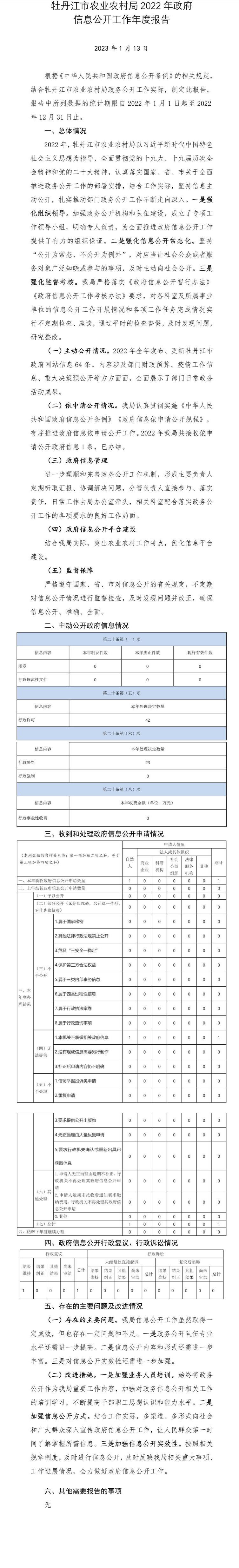 牡丹江市農業農村局2022年政府信息公開工作年度報告