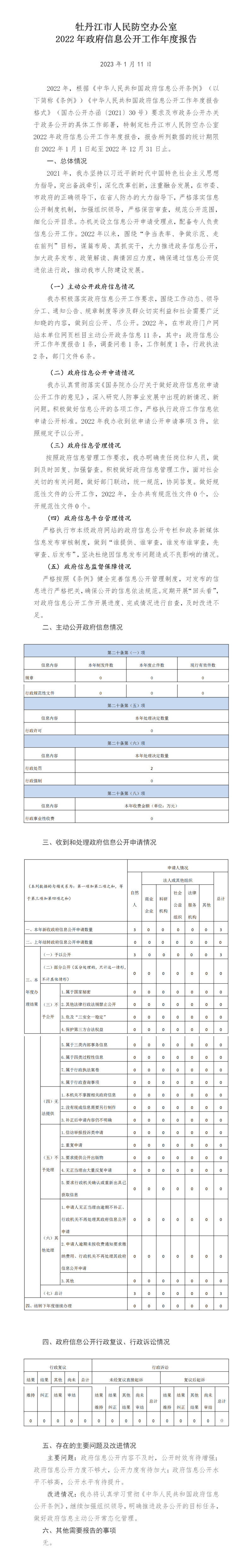 牡丹江市人民防空辦公室2022年政府信息公開(kāi)工作年度報(bào)告
