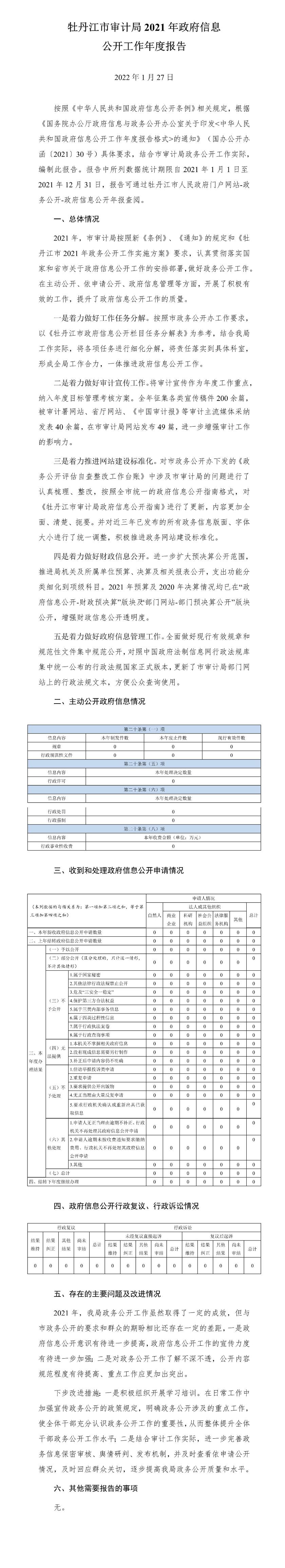 牡丹江市審計局2021年政府信息公開工作年度報告