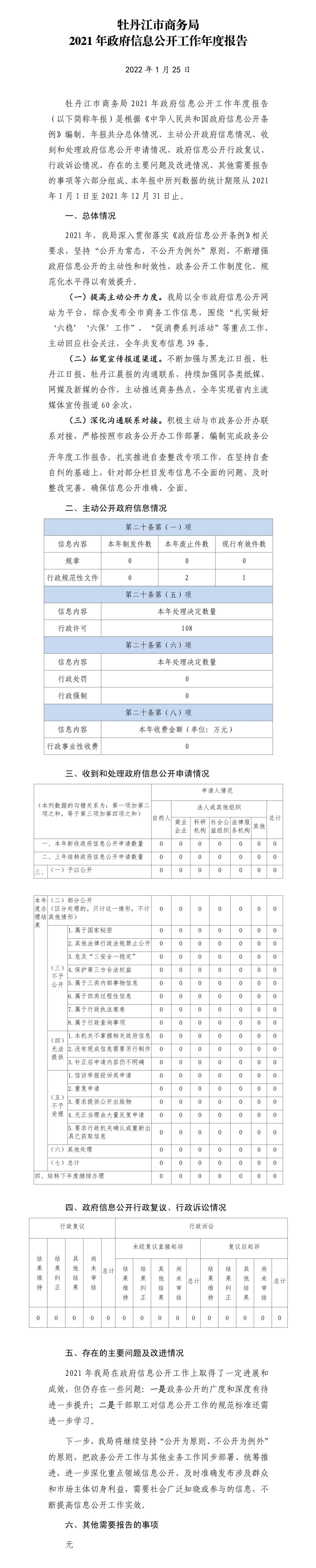 牡丹江市商務(wù)局2021年政府信息公開工作年度報(bào)告