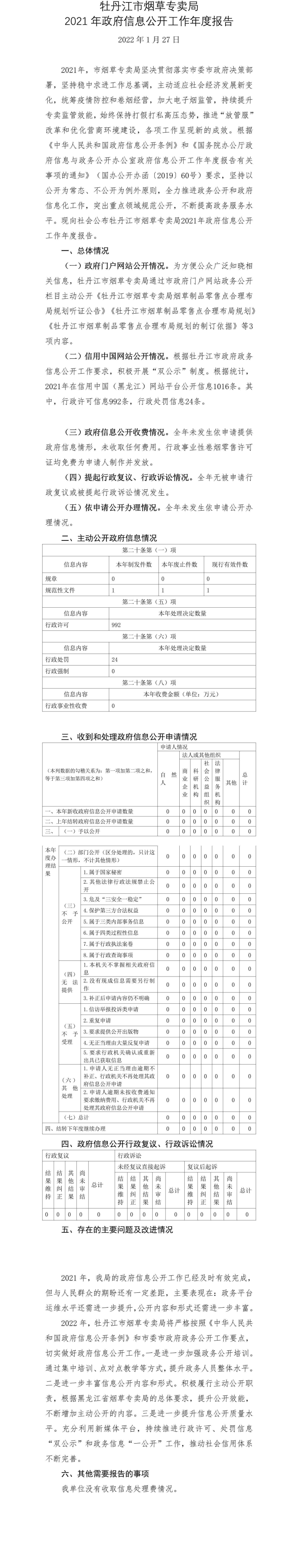 牡丹江市煙草專賣局2021年政府信息公開工作年度報告