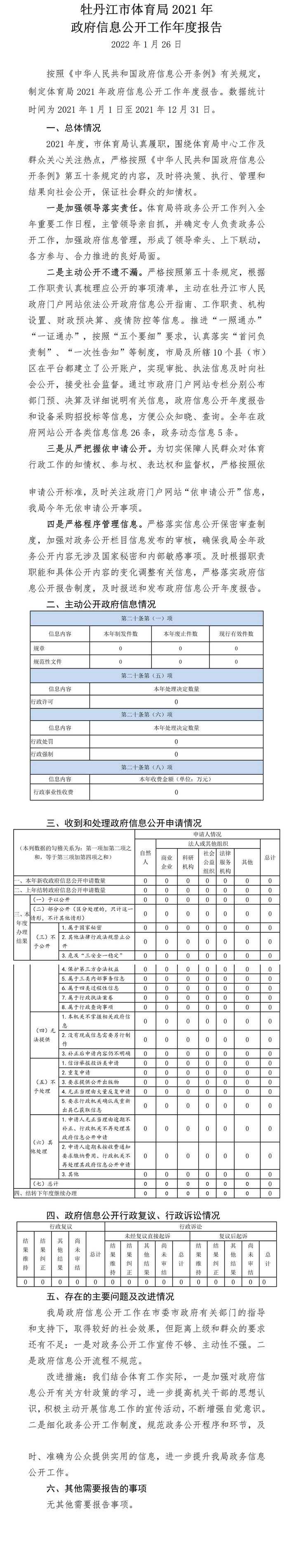 牡丹江市體育局2021年政府信息公開工作年度報告