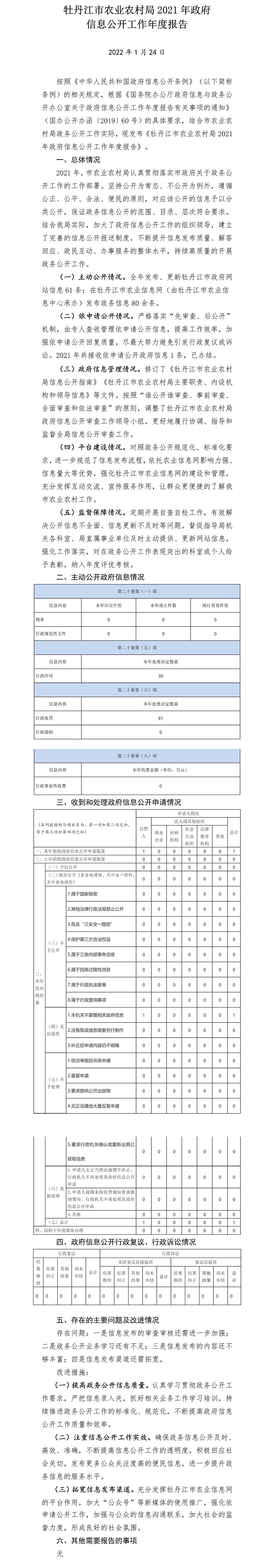 牡丹江市農業農村局2021年政府信息公開工作年度報告