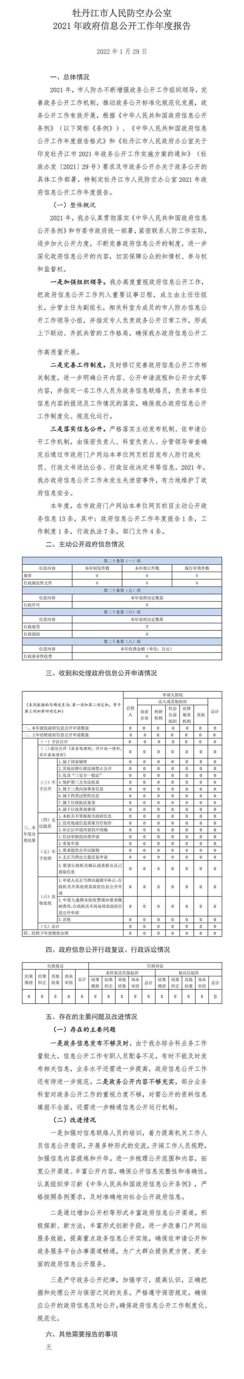 牡丹江市人民防空辦公室2021政府信息公開工作年度報告