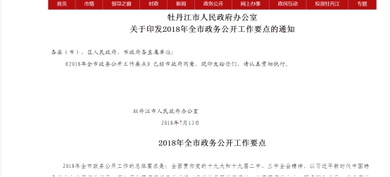 2018年度牡丹江市政府信息公開工作報告