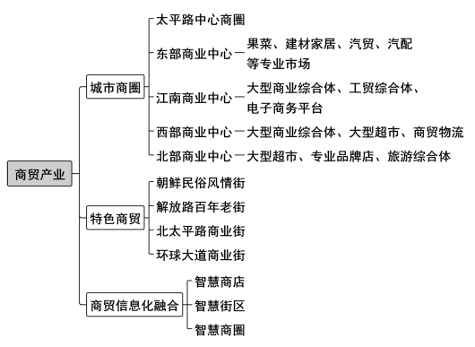 8.推動商貿業提檔升級。依托商貿發展基礎和對俄優勢,促進線上線下融合,推動商貿產業向信息化、立體化、多層面、全方位方向發展,重點建設集購物、休閑、旅游為一體的商貿綜合體,打造東北亞經濟圈核心和黑龍江省東南部商貿中心。到2026年,社會消費品零售總額年均增長6%。優化城市商圈布局。改造提升太平路中心商圈,著力建設“東南西北”四大商業中心,東部商業中心重點發展果菜、建材家居、汽貿、汽配等專業市場,江南商業中心重點發展大型商業綜合體、工貿綜合體、電子商務平臺,西部商業中心重點發展大型商業綜合體、大型超市、商貿物流,北部商業中心重點發展大型超市、專業品牌店、旅游綜合體培育特色商貿模式。優化各類商業網點設施規劃布局,提升發展朝鮮民俗風情街、解放路百年老街、北太平路商業街、環球大道商業街等特色商業街和專業商業街,健全社區商業中心,結合邊境貿易、特色旅游、農產品貿易等建設一批現代商貿特色小鎮。加快推動商品交易市場提檔升級,逐步搬遷中心城區大型批發市場,推進果品、蔬菜、海鮮、服裝、汽配、建材等重點批發市場整合提升,推動多層次、多業態、多功能的特色性商圈和城市中心商圈發展,構建布局合理、功能齊全的商品批發市場體系。強化商貿信息化融合。支持建設“智慧商店”“智慧街區”“智慧商圈”,增強消費便利性。大力發展電子商務,鼓勵傳統企業開辟線上銷售服務。引進和培育現代商貿服務企業,著力振興“老字號”商貿服務企業,積極引導有實力的商貿流通企業向農村延伸網絡,優化農村商貿流通布局,提高農民生產生活便利程度。〔牽頭部門:市商務局,責任部門:市工信局、市農業農村局、市市場監管局、市城管局,各縣(市)區政府〕