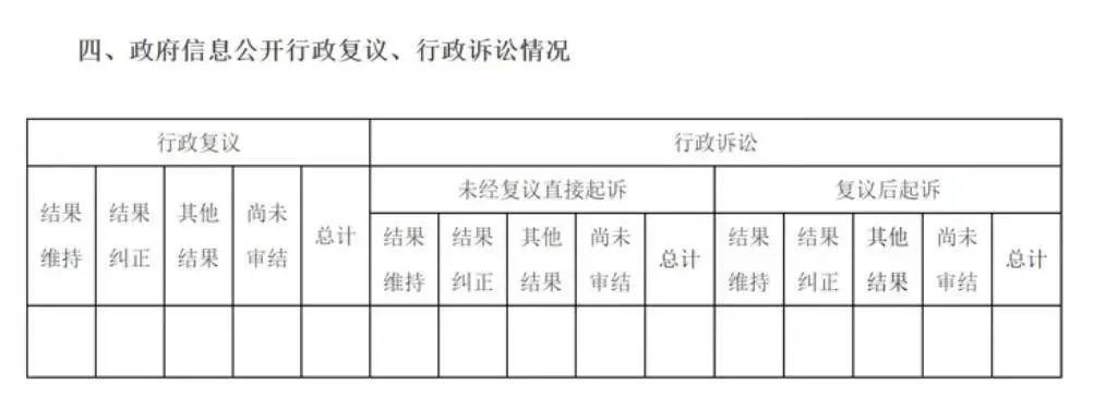 這一項主要報告兩方面情況:一是政府信息公開行政復議處理結果情況;二是政府信息公開行政訴訟處理結果情況。根據行政復議法和行政訴訟法有關規定,行政訴訟處理結果需進一步區分兩類情形,分別是“未經復議直接起訴”和“復議后起訴”。